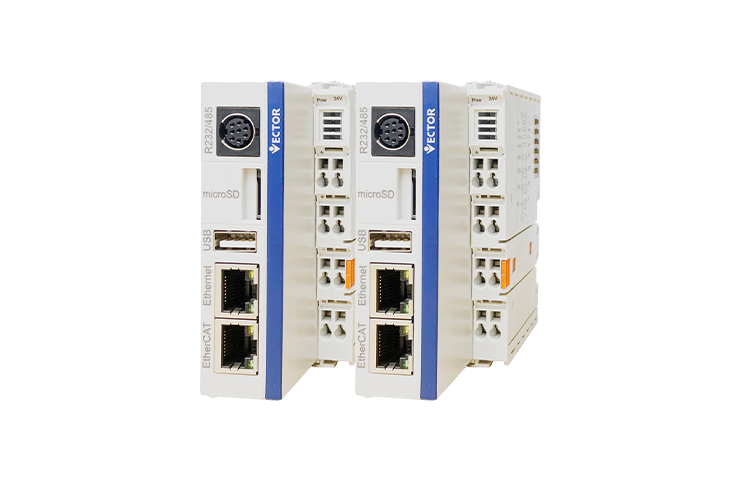 • 威科達(dá)VE系列運(yùn)動(dòng)控制器,搭載高性能CPU(4核1.6GHZ主頻)具有強(qiáng)大的運(yùn)算能力,基于linux系統(tǒng),采?CODESYS編程?具,?持IEC61131-3國(guó)際標(biāo)準(zhǔn)的6種編程語(yǔ)?的高性能運(yùn)動(dòng)控制器。標(biāo)配EtherCAT工業(yè)以太網(wǎng)實(shí)時(shí)總線(xiàn),可以實(shí)現(xiàn)最大64軸同步控制。