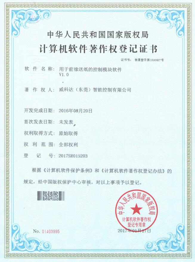 用于前緣送紙的控制模塊軟件V1.0