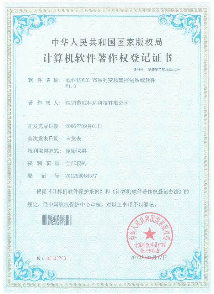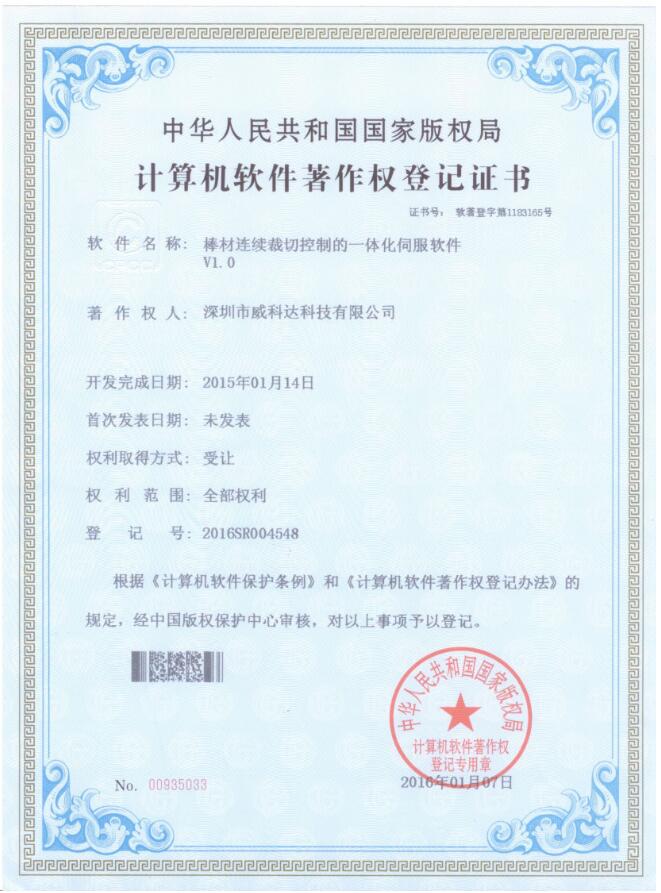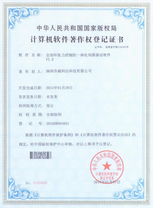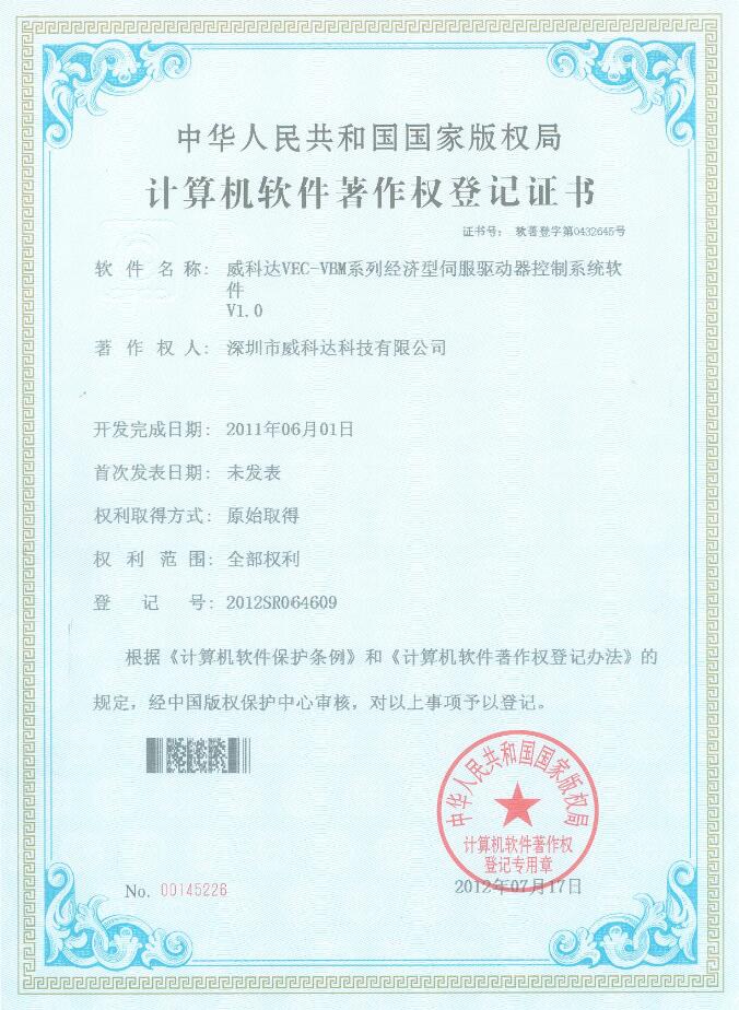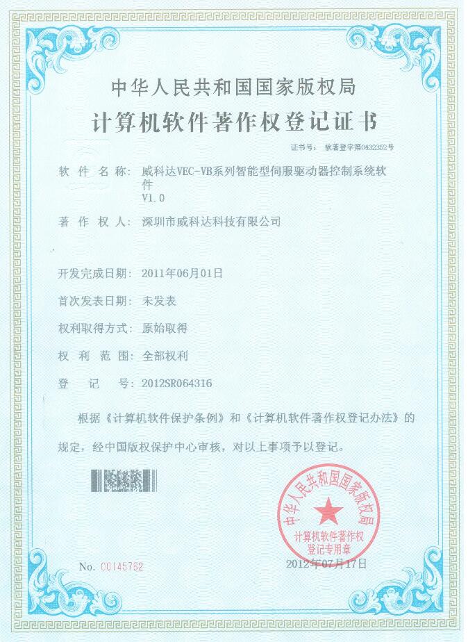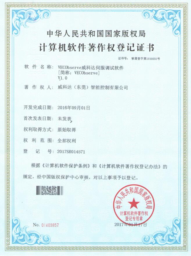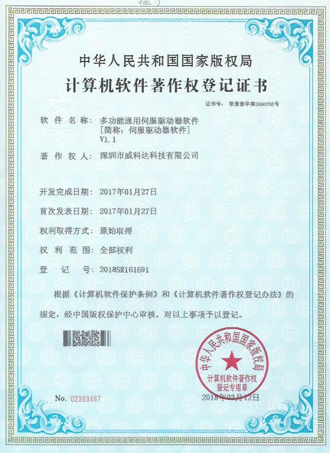 威科達伺服調(diào)試軟件證書