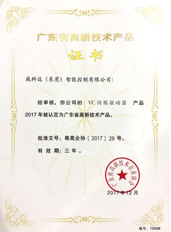 廣東省高新技術產(chǎn)品證書